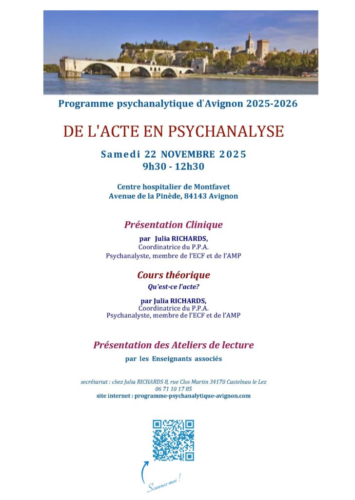 Les ATELIERS de LECTURE porteront sur des textes fondamentaux de la psychanalyse, de Sigmund FREUD, Jacques LACAN, Jacques-Alain MILLER, sur le thème de l’Acte.